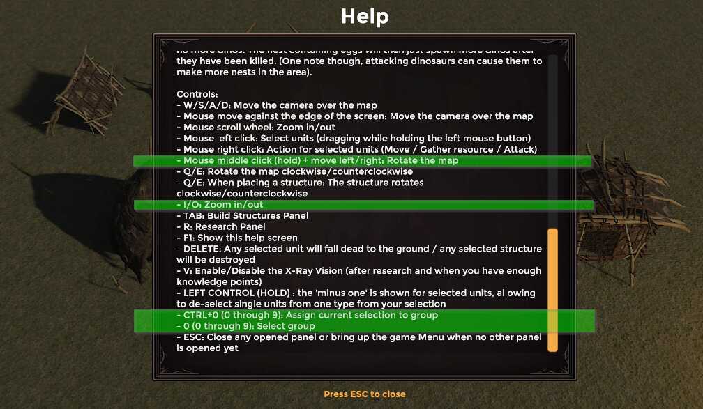 - Add the 'group' controls functionality to the Help text: press any number from 0 to 9 to select a group, and CTRL+0 (to 9) to assign the current selected units to a group.